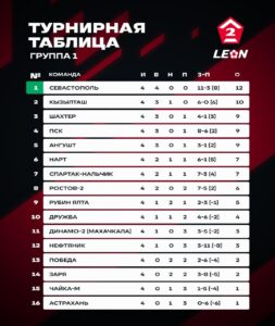 По итогам 4-го тура LEON-Второй лиги Б в группе 1 дагестанские команды расположились на 11–13 местах турнирной таблицы.
